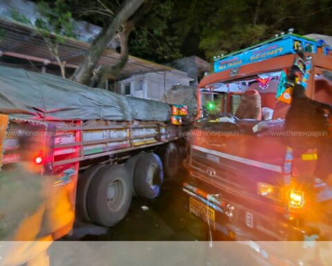 കൊയിലാണ്ടി: ഇന്ന് പുലർച്ചെ രണ്ടരയോടെ കൊയിലാണ്ടി പാലക്കുളം ദേശീയപാതയിൽ രണ്ടു ചരക്ക് ലോറികളും ഒരു മീൻവണ്ടിയും തമ്മിൽ ഉണ്ടായ കൂട്ടിയിടിയിലാണ് ഗതാഗതം