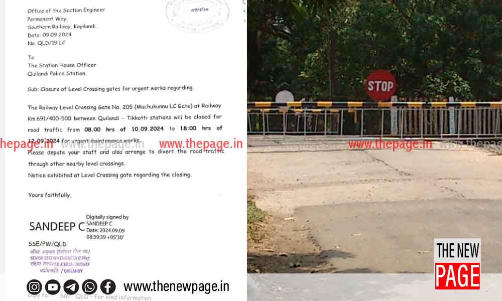 ആനക്കുളം മുചുകുന്ന് റെയിൽവേ ഗേറ്റ് സെപ്റ്റംബർ 10 നും 12 നും അടച്ചിടും