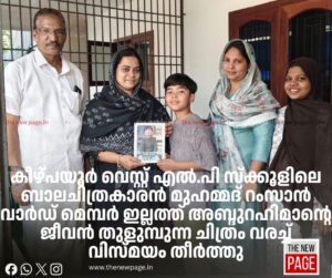 കീഴ്പയൂർ വെസ്റ്റ് എൽ.പി സ്ക്കൂളിലെ നാലാം തരം വിദ്യാർത്ഥിയായ ബാലചിത്രകാരൻ മുഹമ്മദ് റംസാൻ മേപ്പയൂർ ഗ്രാമപഞ്ചായത്തിലേക്ക് തെരഞ്ഞെടുക്കപ്പെട്ട തന്റെ നാട്ടുകാരനായ വാർഡ്