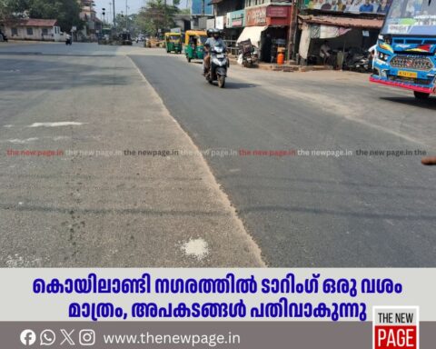 കൊയിലാണ്ടി നഗര മധ്യത്തില് ഒരു വശത്ത് മാത്രം റീ ടാറിംങ്ങ് നടത്തിയത് അപകടക്കെണിയൊരുക്കുന്നു. ദേശീയപാതാ അധികൃതരുടെ മേല്നോട്ടത്തില് ചെയ്ത ടാറിംഗ് അത്യന്തം