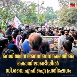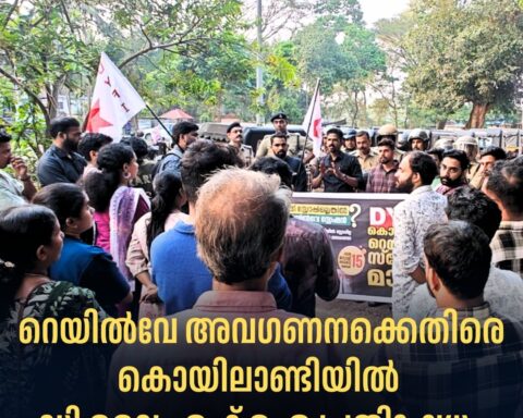 ഇൻ്റർസിറ്റി ട്രെയിനുകൾക്ക് സ്റ്റോപ്പ് അനുവദിക്കുക, കൊയിലാണ്ടിയോടുള്ള അവഗണന അവസാനിപ്പിക്കുക, ഷാഫി പറമ്പിൽ എം.പി യുടെ അനാസ്ഥ അവസാനിപ്പിക്കുക എന്ന മുദ്രാവാക്യമുയർത്തി ഡി