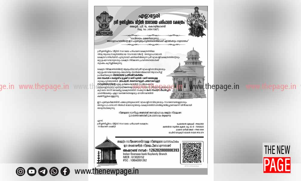 ശ്രീ ഉണിച്ചിരാം വീട്ടിൽ നാഗാലയ പരിപാലന ക്ഷേത്രത്തില നിത്യ ആരാധനാമൂർത്തിയായ നാഗരാജാവിന്റെ അനുഗ്രഹത്താൽ, ക്ഷേത്രസന്നിധിയിൽ പുതുതായി പണികഴിപ്പിക്കുന്ന ശ്രീ ഭദ്രകാളി ക്ഷേത്രത്തിന്റെയും മറ്റു ഉപദേവന്മാരുടെയും ക്ഷേത നിർമ്മാണ പ്രവർത്തനങ്ങൾക്ക് തുടക്കമായി.