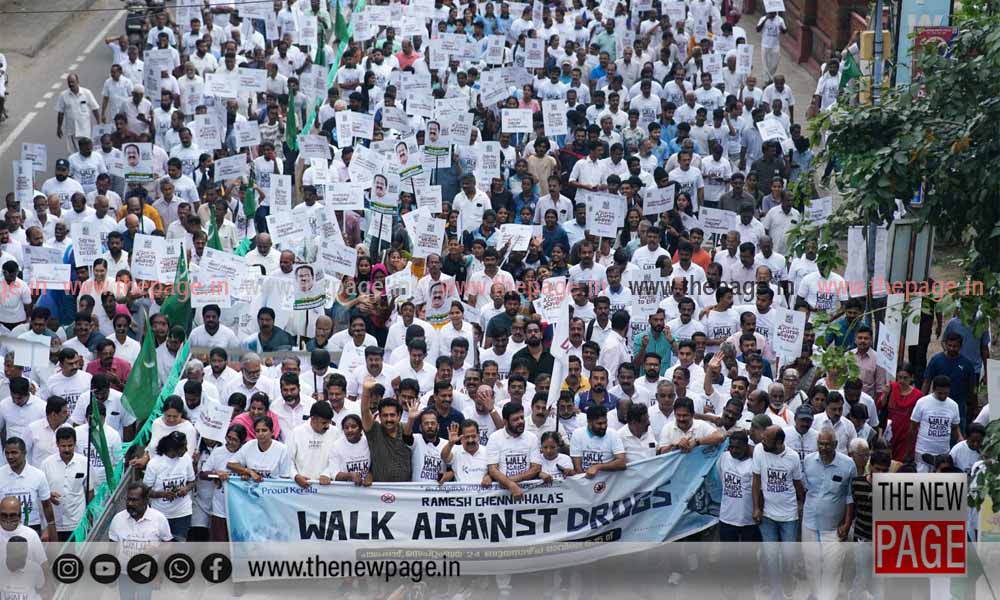 രമേശ് ചെന്നിത്തല നയിച്ച പ്രൗഡ് കേരളയുടെ വാക്ക് എഗെന്‍സ്റ്റ് ഡ്രഗ്‌സ് പാലക്കാടന്‍ മണ്ണില്‍ ജനകീയ പ്രതിരോധത്തിന്റെ ഐക്യദാര്‍ഢ്യ പ്രഖ്യാപനമായി
