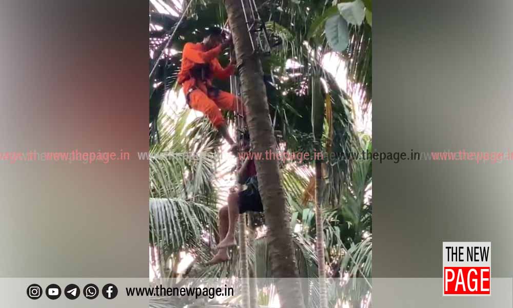 പേരാമ്പ്ര: മുതുകാട് ക്ഷേത്രത്തിനുസമീപം തെങ്ങിൽ കുടുങ്ങിയ യുവാവിനെ അഗ്നിശമനസേന അതിസാഹസികമായി രക്ഷപ്പെടുത്തി. ഇന്നലെ വൈകിട്ട് നാലുമണിയോടെയായിരുന്നു സംഭവം. തെങ്ങുകയറ്റയന്ത്രം തകരാറായതിനാലെ തുടർന്ന്
