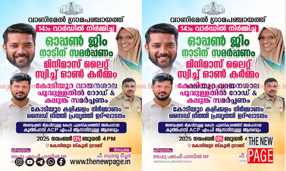 വാണിമേൽ ഗ്രാമപഞ്ചായത്ത് 14ാം വാർഡിൽ പൂർത്തീകരിച്ച വിവിധ വികസന പ്രവർത്തങ്ങളുടെ ഉദ്ഘാനം നാളെ വൈകിട്ട് നാല് മണിക്ക് ബഹു ഷാഫി പറമ്പിൽ എം. പി ഉദ്ഘാടനം ചെയ്യും. എം.പി ഫണ്ട്‌ ഉപയോഗിച്ച് നിർമ്മിച്ച മിനി മാസ്സ് ലൈറ്റ് സ്വിച്ച് ഓൺ കർമ്മം, ഓപ്പൻ ജിം സമർപ്പണം, കോടിയൂറ വായനശാല -പൂവുള്ളതിൽ റോഡ് അനുബന്ധ കലുങ്ക്, കോടിയൂറ കളിക്കളനിർമ്മാണം സൈഡ് ഭിത്തി പ്രവർത്തി ഉദ്ഘാടനം തുടങ്ങി വാർഡിലെ വിവിധ പദ്ധതികൾ എം. പി നാളെ ഉദ്ഘാടനം ചെയ്യും.