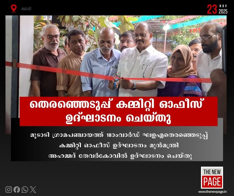 മൂടാടി ഗ്രാമപഞ്ചായത്ത് 18ാംവാർഡ് എൽ.ഡി.എഫ് തെരഞ്ഞെടുപ്പ് കമ്മിറ്റി ഓഫീസ് ഉദ്ഘാടനം മുൻമന്ത്രി അഹമ്മദ് തേവർകോവിൽ ഉദ്ഘാടനം ചെയ്തു