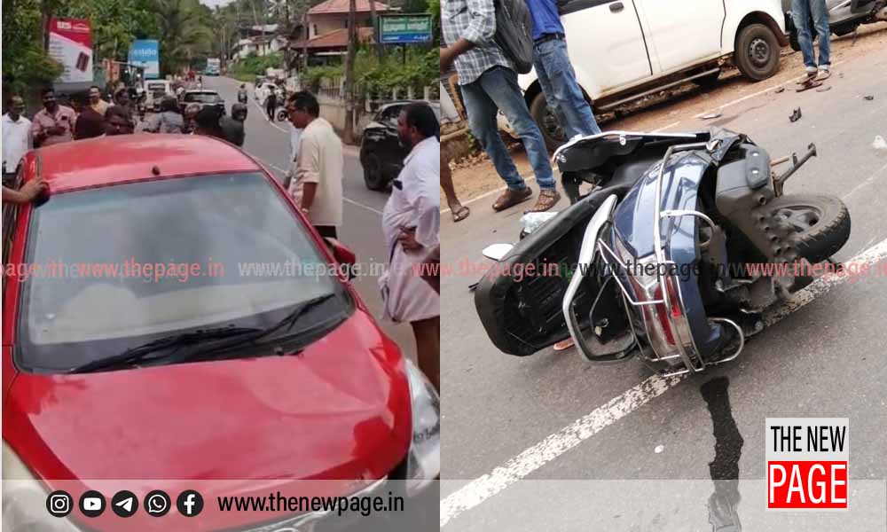 വാഹനാപകടത്തിൽ കാറിന്നുള്ളിൽ കുടുങ്ങിയ സ്കൂട്ടർ യാത്രക്കാരനെ രക്ഷപ്പെടുത്തി