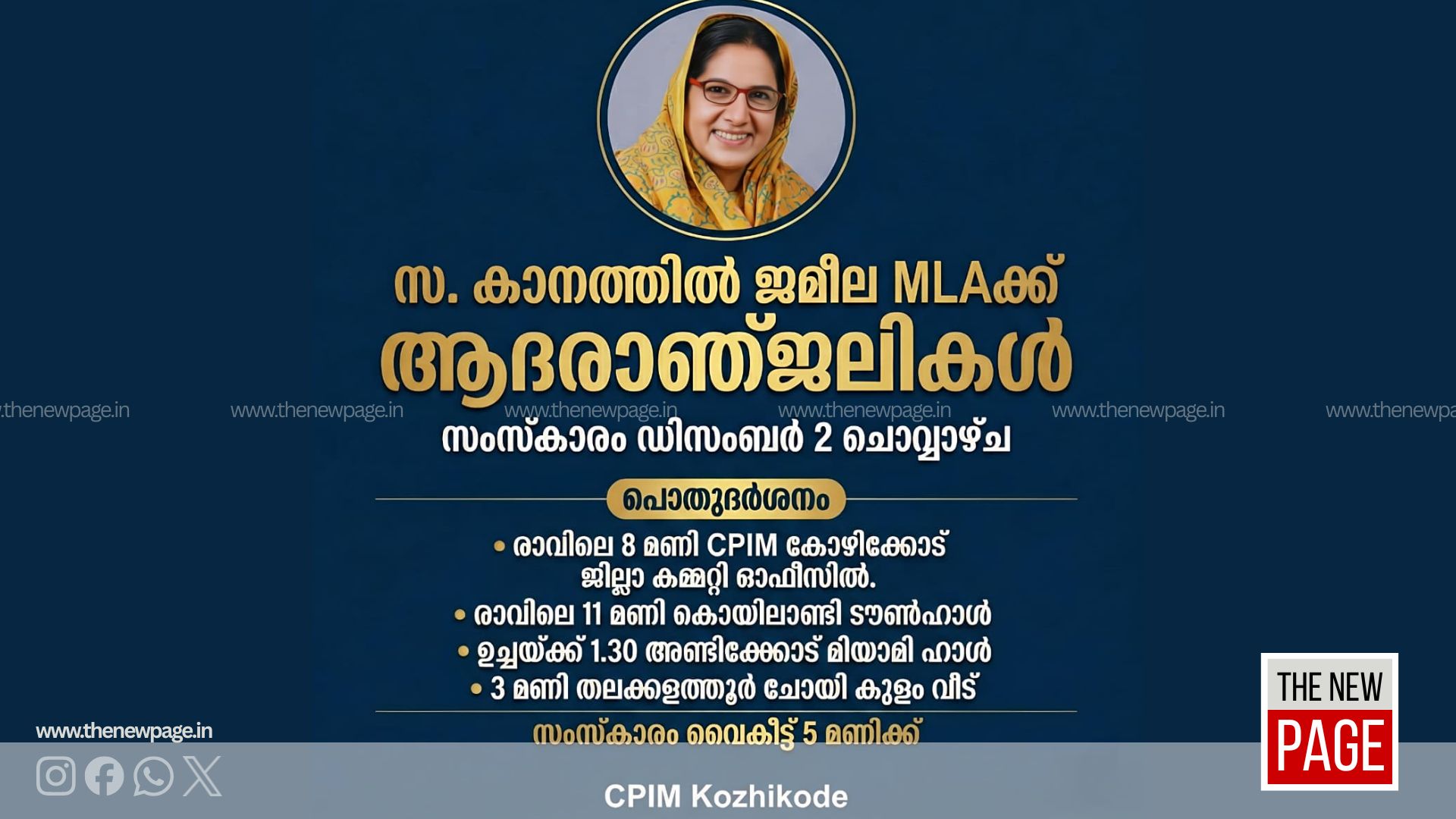 കൊയിലാണ്ടി: അന്തരിച്ച കാനത്തിൽ ജമീല എം എൽ എയുടെ ഭൗതിക ശരീരം ചൊവ്വാഴ്ച രാവിലെ 11 മുതൽ ഒരു മണി വരെ