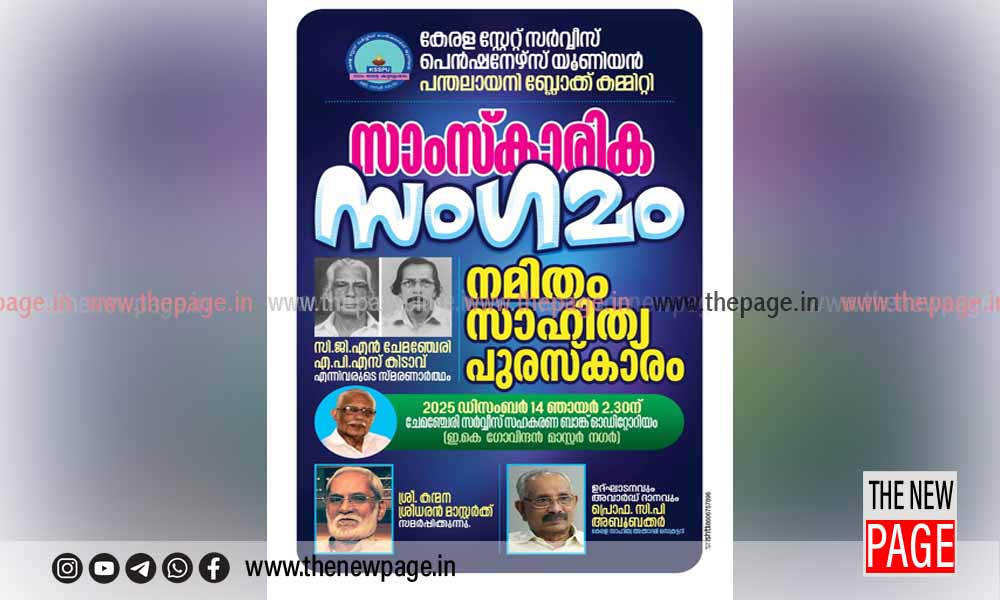 കേരള സ്റ്റേറ്റ് സർവ്വീസ് പെൻഷനേഴ്സ് യൂണിയൻ പന്തലായനി ബ്ലോക്ക് നമിതം സാഹിത്യ പുരസ്കാര സമർപ്പണം ഡിസംബർ 14 ഞായർ