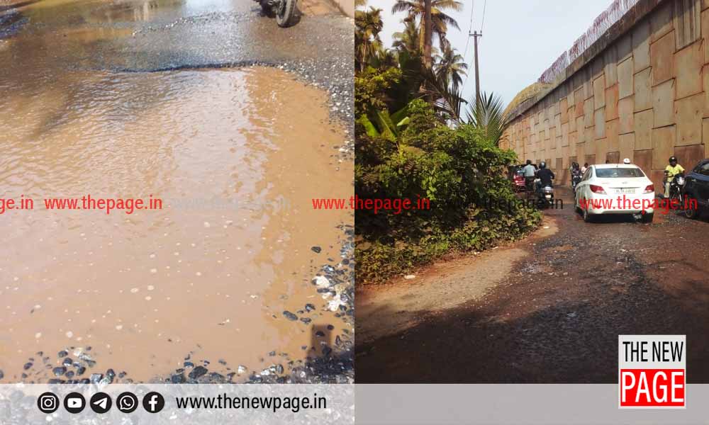 കൊല്ലം നെല്ല്യാടി റോഡിലെ അണ്ടർ പാസിന് സമീപം സർവ്വീസ് റോഡ് തകർന്നു