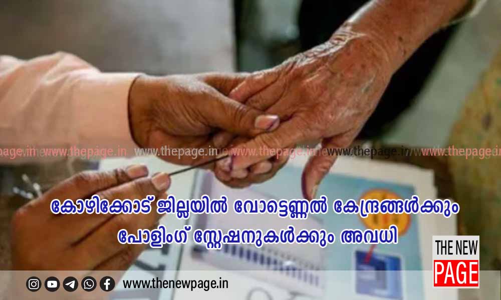 വോട്ടെണ്ണല് കേന്ദ്രങ്ങള്ക്കും പോളിംഗ് സ്റ്റേഷനുകള്ക്കും കലക്ടർ അവധി പ്രഖ്യാപിച്ചു. കോഴിക്കോട് ജില്ലയില് പോളിംഗ് സ്റ്റേഷനുകളായും സ്വീകരണ-വിതരണ കേന്ദ്രങ്ങളായും നിശ്ചയിച്ച വിദ്യാഭ്യാസ സ്ഥാപനങ്ങള്