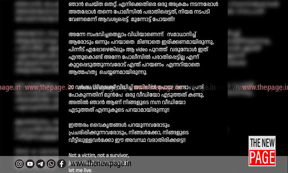 നടിയെ ആക്രമിച്ച കേസിൽ വൈകാരിക കുറിപ്പുമായി അതിജീവിത