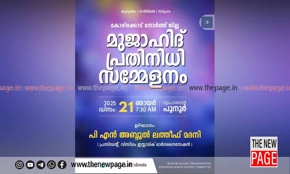 ‘കുടുംബം – സമൂഹം ധാർമ്മികത’ എന്ന പ്രമേയത്തിൽ വിസ്ഡം ഇസ്‌ലാമിക് ഓർഗനൈസേഷൻ സംഘടിപ്പിക്കുന്ന ജില്ലാ മുജാഹിദ് പ്രതിനിധി സമ്മേളനം 21 ന് ഞായറാഴ്ച പൂനൂർ വ്യാപാരഭവൻ ഓഡിറ്റോറിയത്തിൽ നടക്കും. രാവിലെ 8 മണിക്ക് വിസ്ഡം ഇസ്‌ലാമിക് ഓർഗനൈസേഷൻ സംസ്ഥാന പ്രസിഡണ്ട് പി. എൻ അബ്ദുല്ലത്തീഫ് മദനി ഉദ്ഘാടനം ചെയ്യും. സംസ്ഥാന സെക്രട്ടറി നാസർ ബാലുശ്ശേരി അധ്യക്ഷത വഹിക്കും. വിസ്ഡം യൂത്ത് സംസ്ഥാന ജനറൽ സെക്രട്ടറി ടി.കെ നിഷാദ് സലഫി, വിസ്ഡം സ്റ്റുഡൻ്റ്സ് സംസ്ഥാന സെക്രട്ടറി മുഹമദ് സഫ്‌വാൻ അൽ ഹികമി, റഷീദ് കൊടക്കാട്ട്, അബ്ദുറഹ്മാൻ ചുങ്കത്തറ, സി.പി ഷഹീർ, ഫസീഹ് പി.ഒ, ഡോ. അബ്ദുൽ മാലിക്ക്, നിയാസ് കക്കാട്, യൂനുസ് പട്ടാമ്പി വിവിധ വിഷയങ്ങൾ അവതരിപ്പിക്കും.