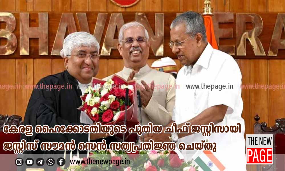 കേരള ഹൈക്കോടതിയുടെ പുതിയ ചീഫ് ജസ്റ്റിസായി ജസ്റ്റിസ് സൗമൻ സെൻ സത്യപ്രതിജ്ഞ ചെയ്തു. ലോക്ഭവനിൽ ശനിയാഴ്ച രാവിലെ ഗവർണർ രാജേന്ദ്ര വിശ്വനാഥ് അർലേക്കറാണ് സത്യപ്രതിജ്ഞ വാചകം ചൊല്ലിക്കൊടുത്തത്. മുഖ്യമന്ത്രി പിണറായി വിജയൻ വേദിയിൽ സന്നിഹിതനായിരുന്നു. കൊല്ക്കത്ത സ്വദേശിയായ ജസ്റ്റിസ് സൗമന് സെന് 2011ൽ കല്ക്കട്ട ഹൈക്കോടതിയിലും 2025 സെപ്റ്റംബറില് മേഘാലയ ഹൈക്കോടതിയിലും ജഡ്ജിയായി സേവനമനുഷ്ടിച്ചിട്ടുണ്ട്.