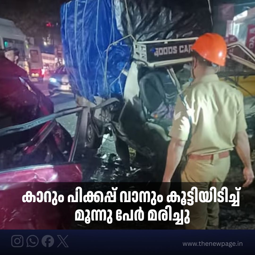 കോഴിക്കോട്: കുന്നമംഗലത്ത് കാറും പിക്കപ്പ് ലോറിയും കൂട്ടിയിടിച്ചുണ്ടായ അപകടത്തിൽ മൂന്ന് പേർ മരിച്ചു. രണ്ട് കാർ യാത്രക്കാരും പിക്കപ്പ് ലോറി ഡ്രൈവറുമാണ് മരിച്ചത്. കൊടുവള്ളി സ്വദേശി നിഹാൽ, ഇങ്ങാപ്പുഴ സ്വദേശി സുബി, വയനാട് സ്വദേശി സമീർ എന്നിവരാണ് മരിച്ചത് . പിക്കപ്പ് വാനിലുണ്ടായിരുന്ന ഡ്രൈവറുടെ സഹായിയെ പരിക്കുകളോടെ കോഴിക്കോട് മെഡിക്കൽ കോളേജ് ആശുപത്രിയിൽ പ്രവേശിപ്പിച്ചു. ഇന്ന് പുലര്ച്ചെ രണ്ടുമണിയോടെ താമരശ്ശേരി ഭാഗത്തേക്ക് പോകുകയായിരുന്ന കാറും കോഴിക്കോട് ഭാഗത്തേക്ക് പോകുകയായിരുന്ന പിക്കപ്പ് വാനും കൂട്ടിയിടിക്കുകയായിരുന്നു. നാട്ടുകാരും പൊലീസും സ്ഥലത്തെത്തി രക്ഷാപ്രവർത്തനം നടത്തിയെങ്കിലും മൂന്നുപേരും സംഭവസ്ഥലത്തുവെച്ചു തന്നെ മരിച്ചു. ഗുരുതരമായി പരിക്കേറ്റയാളെ കോഴിക്കോട് മെഡിക്കൽ കോളേജിൽ പ്രവേശിപ്പിച്ചു. ഇടിയുടെ ആഘാതത്തിൽ കാർ പൂർണ്ണമായും തകർന്നു. മൃതദേഹം കോഴിക്കോട് മെഡിക്കൽ കോളേജിലേക്ക് മാറ്റി.
