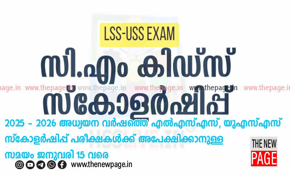 2025 – 2026 അധ്യയന വർഷത്തെ എൽഎസ്എസ്, യുഎസ്എസ് സ്കോളർഷിപ്പ് പരീക്ഷകൾക്ക് അപേക്ഷിക്കാനുള്ള സമയം ജനുവരി 15 വരെ