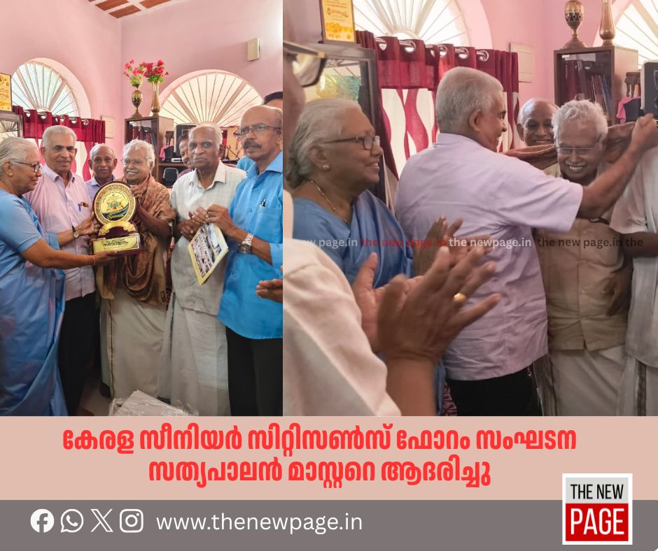 കേരള സീനിയർ സിറ്റിസൺസ് ഫോറം സംഘടന സത്യപാലൻ മാസ്റ്ററെ ആദരിച്ചു