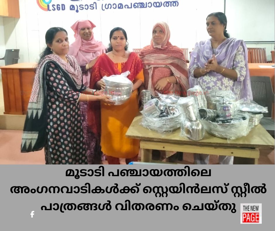 ജനകീയാസൂത്രണ പദ്ധതിയുടെ ഭാഗമായി മൂടാടി ഗ്രാമപഞ്ചായത്തിലെ 32 അംഗനവാടികളിലേക്കും ഭക്ഷണം പാകം ചെയ്യാനും കഴിക്കാനുമുള്ള സ്റ്റെയിൻലസ് സ്റ്റീൽ പാത്രങ്ങളും ചാർട്ട് ബോർഡുകളും വിതരണം ചെയ്തു. വിതരണോത്ഘാടനം ഗ്രാമപഞ്ചായത്ത് പ്രസിഡൻ്റ് എം. പി. അഖില നിർവ്വഹിച്ചു.