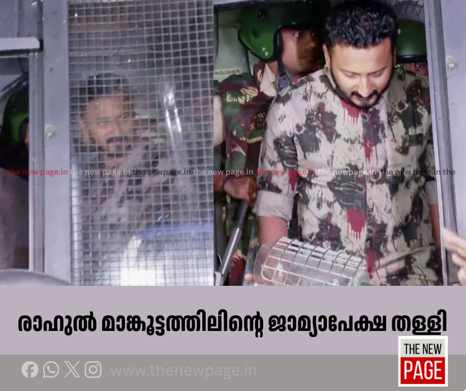 രാഹുൽ മാങ്കൂട്ടത്തിലിന്റെ ജാമ്യാപേക്ഷ തള്ളി