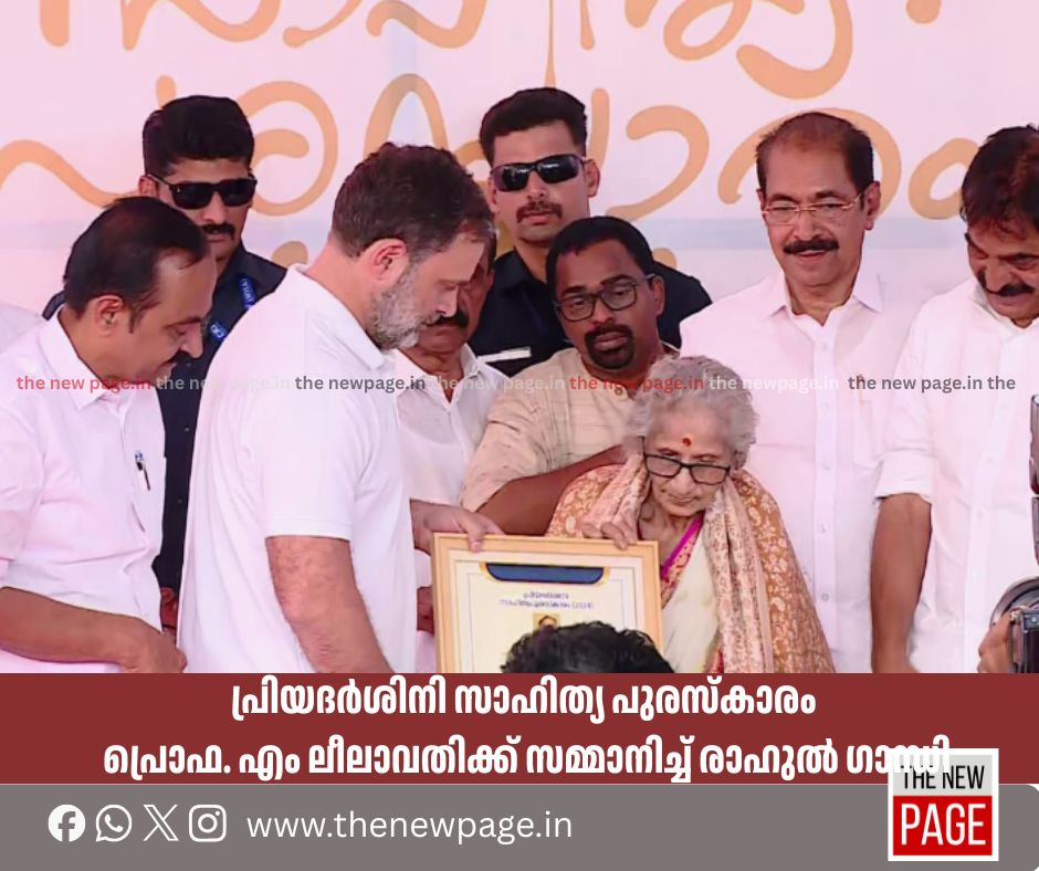 എറണാകുളത്ത് നടന്ന ചടങ്ങിൽ രാഹുൽ ഗാന്ധി, പ്രിയദർശിനി സാഹിത്യ പുരസ്കാരം പ്രൊഫ. എം. ലീലാവാതിക്ക് സമ്മാനിച്ചു.  നമുക്കെല്ലാം ഊര്‍ജമാണ് ടീച്ചറുടെ ജീവിതമെന്ന്