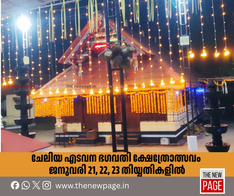 ചേലിയ എടവന ഭഗവതി ക്ഷേത്രോത്സവം ജനുവരി 21, 22, 23 തിയ്യതികളിൽ