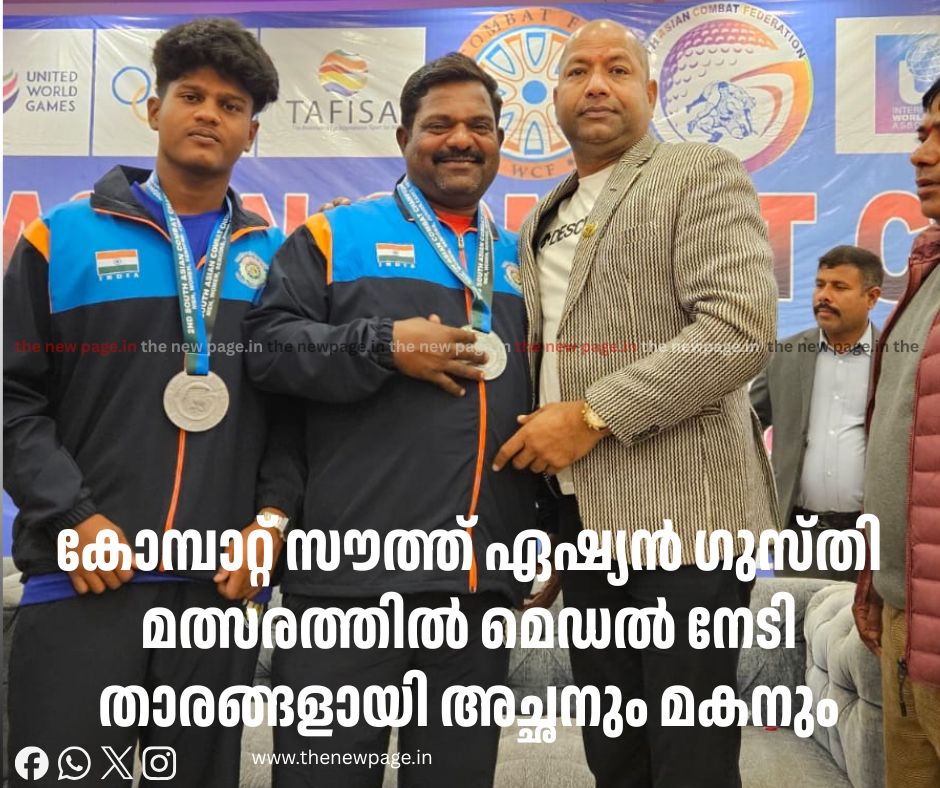കോമ്പാറ്റ് സൗത്ത് ഏഷ്യൻ ഗുസ്തി മത്സരത്തിൽ മെഡൽ നേടി താരങ്ങളായി അച്ഛനും മകനും. എരമംഗലം കോറോത്ത് താമസിക്കും പൂളയിൽ (നന്മണ്ട) അബിനേഷും,