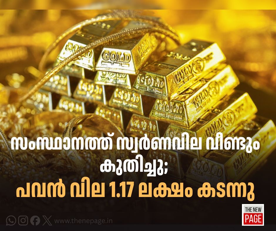 സംസ്ഥാനത്ത് സ്വര്‍ണവില വീണ്ടും കുതിച്ചു; പവന്‍ വില 1.17 ലക്ഷം കടന്നു