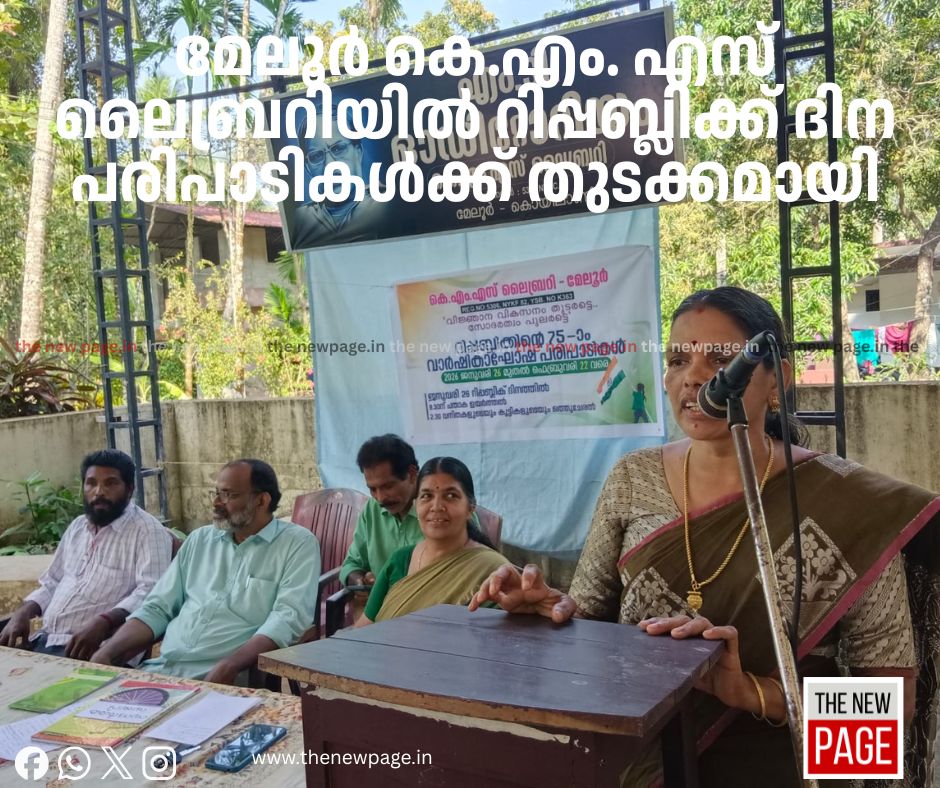 ‘വിജ്ഞാന വികസനം തുടരട്ടെ, സോദരത്വം പുലരട്ടെ’ എന്ന സന്ദേശമുയർത്തി റിപ്പബ്ലിക്കിൻ്റെ 77ാം വാർഷികാഘോഷ ങ്ങൾക്ക് മേലൂർ കെ.എം. എസ് ലൈബ്രറിയിൽ തുടക്കമായി.