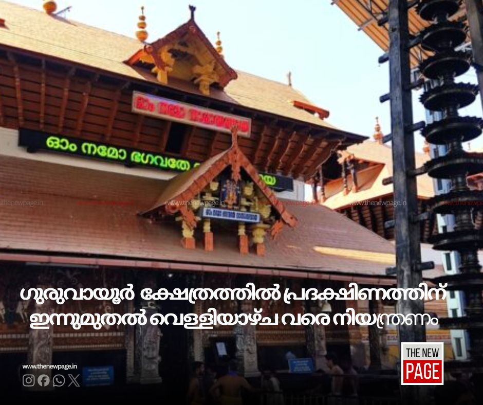 ഗുരുവായൂര്‍ ക്ഷേത്രത്തില്‍ പ്രദക്ഷിണത്തിന് ഇന്നുമുതല്‍ വെള്ളിയാഴ്ച വരെ നിയന്ത്രണം