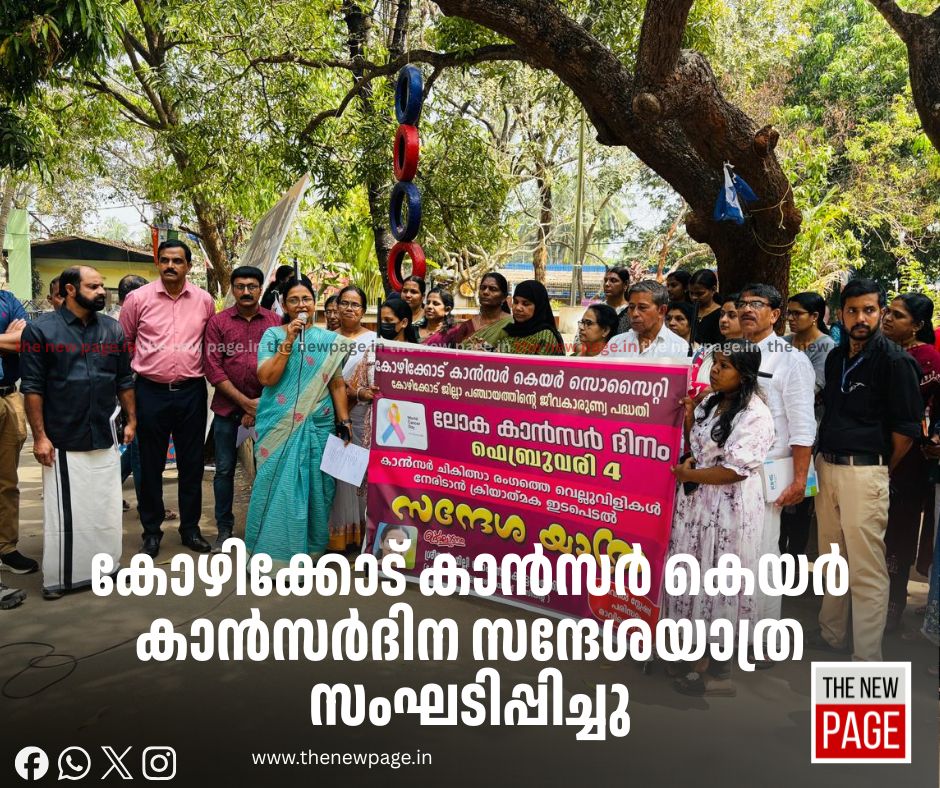 ലോക കാന്‍സര്‍ ദിനത്തിന്റെ ഭാഗമായി ജില്ലാ പഞ്ചായത്തിന് കീഴിലെ കോഴിക്കോട് കാന്‍സര്‍ കെയര്‍ സൊസൈറ്റിയുടെ ആഭിമുഖ്യത്തില്‍ സിവില്‍ സ്റ്റേഷനില്‍ സന്ദേശയാത്ര സംഘടിപ്പിച്ചു. ജില്ലാ പഞ്ചായത്ത് പ്രസിഡന്റ് മില്ലി മോഹന്‍ കൊട്ടാരത്തില്‍ ഉദ്ഘാടനം നിര്‍വഹിച്ചു. പൊതുമരാമത്ത് സ്ഥിരം സമിതി അധ്യക്ഷ ബാലാമണി ടീച്ചര്‍ അധ്യക്ഷയായി.