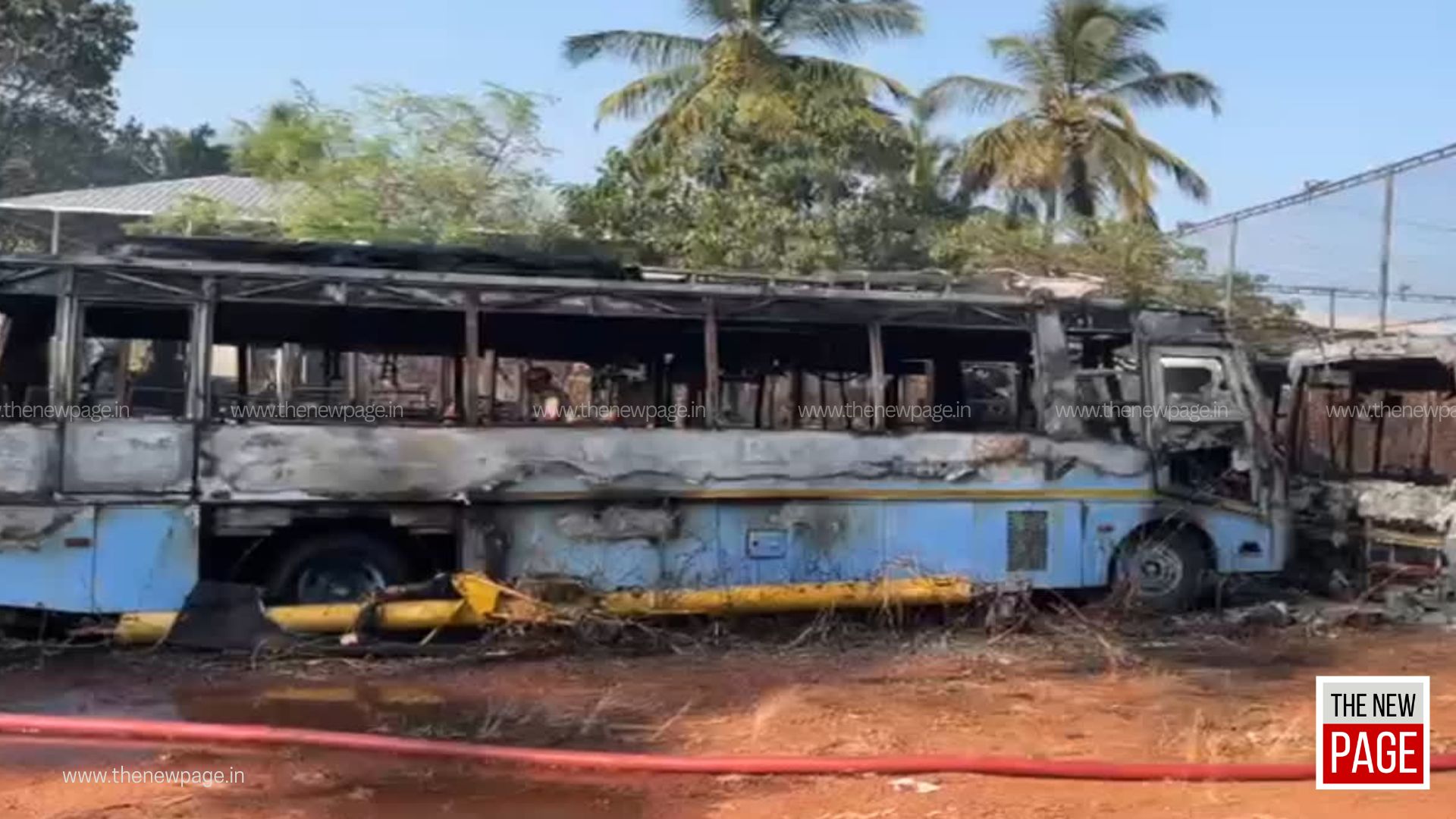 കരിപ്പൂർ എയർപോർട്ട് റോഡിൽ തീപിടിത്തം. നാല് ബസുകൾ കത്തി നശിച്ചു