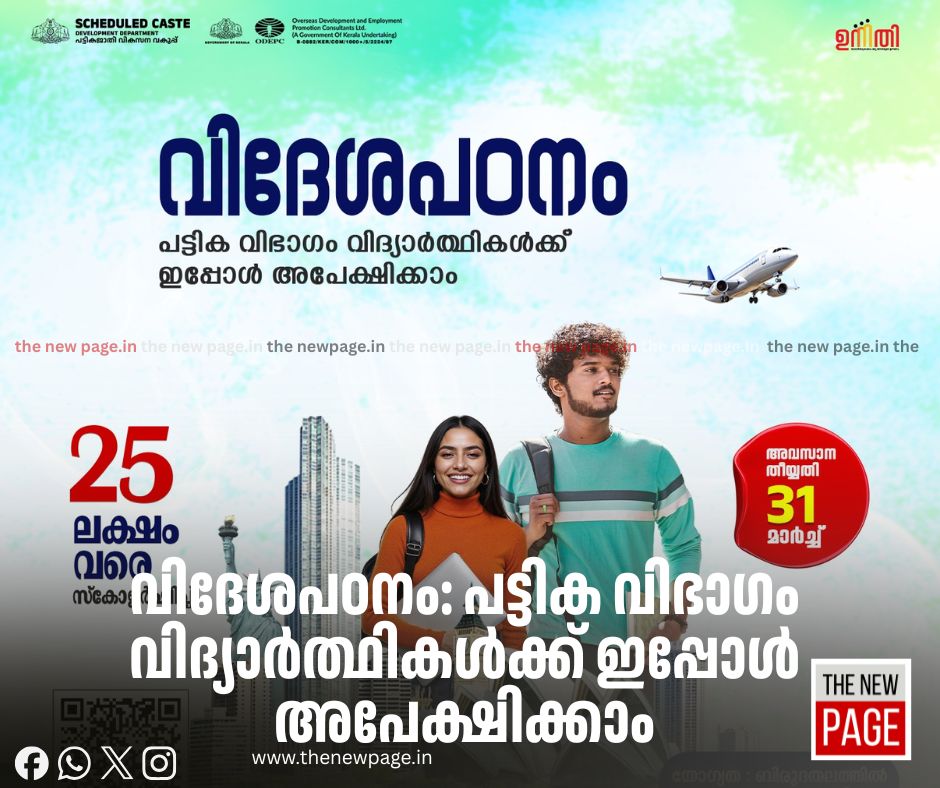 വിദേശ സർവകലാശാലകളിൽ ഉപരിപഠനം നടത്താൻ ആഗ്രഹിക്കുന്ന കേരളത്തിലെ പട്ടികജാതി-പട്ടികവർഗ്ഗ വിഭാഗത്തിൽപ്പെട്ട വിദ്യാർത്ഥികളിൽ നിന്നും 2026-27 വർഷത്തെ ഉന്നതി ഓവർസീസ് സ്കോളർഷിപ്പിന് അപേക്ഷ