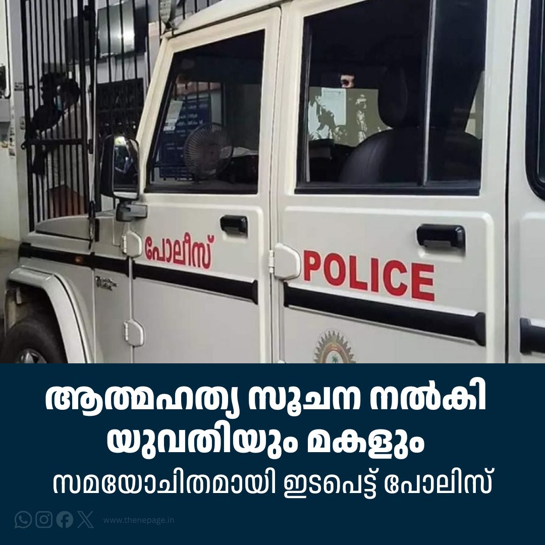 ആത്മഹത്യ സൂചന നൽകി യുവതിയും മകളും പോലിസ് സമയോചിതമായി ഇടപെട്ട് രക്ഷകരായി
