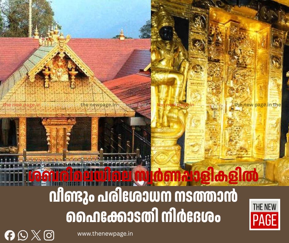 ശബരിമല സ്വർണക്കൊള്ള കേസിൽ ശബരിമലയിലെ സ്വർണപ്പാളികളിൽ വീണ്ടും പരിശോധന നടത്താൻ ഹൈക്കോടതി നിർദേശം
