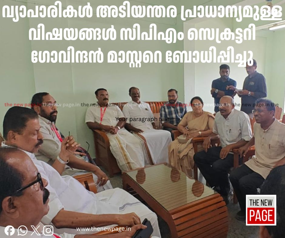 കേരള വ്യാപാരി വ്യവസായി ഏകോപനസമിതി കൊയിലാണ്ടി യൂണിറ്റിലെ നേതാക്കൾ സിപിഎം സെക്രട്ടറി ഗോവിന്ദൻ മാസ്റ്ററെ കാണുകയും നിവേദനം കൊടുക്കുകയും ചെയ്തു. വ്യാപാരികൾ നേരിടുന്ന അടിയന്തര പ്രാധാന്യമുള്ള വിഷയങ്ങൾ നിവേദനത്തിലൂടെ യൂണിറ്റ് പ്രസിഡണ്ട് കെഎം രാജീവൻ, സെക്രട്ടറി ടി പി ഇസ്മായിൽ, വൈസ് പ്രസിഡണ്ട് റിയാസ് അബൂബക്കർ, വനിതാവിംഗ് നേതാവ് സൗമിനി മോഹൻദാസ് എന്നിവർ ചേർന്നാണ് ഗോവിന്ദൻ മാസ്റ്ററെ കണ്ടത്. ഓൺലൈൻ വ്യാപാരം നിർത്തലാക്കുക, ഷോപ്പിന്റെ മുമ്പിലുള്ള കമ്പിവേലികൾ എടുത്തു മാറ്റുക, ലൈസൻസ് എടുക്കുന്നതിന്റെ പേരിൽ 1200 രൂപ ഹരിത കർമ്മ സേനയുടെ പേരിൽ വാങ്ങുന്നത് ഒഴിവാക്കുക, അപ്രഖ്യാപിത പവർകട്ട് ഒഴിവാക്കുക എന്നീ ആവശ്യങ്ങൾ ഉന്നയിച്ചാണ് നിവേദനം നൽകിയത്.