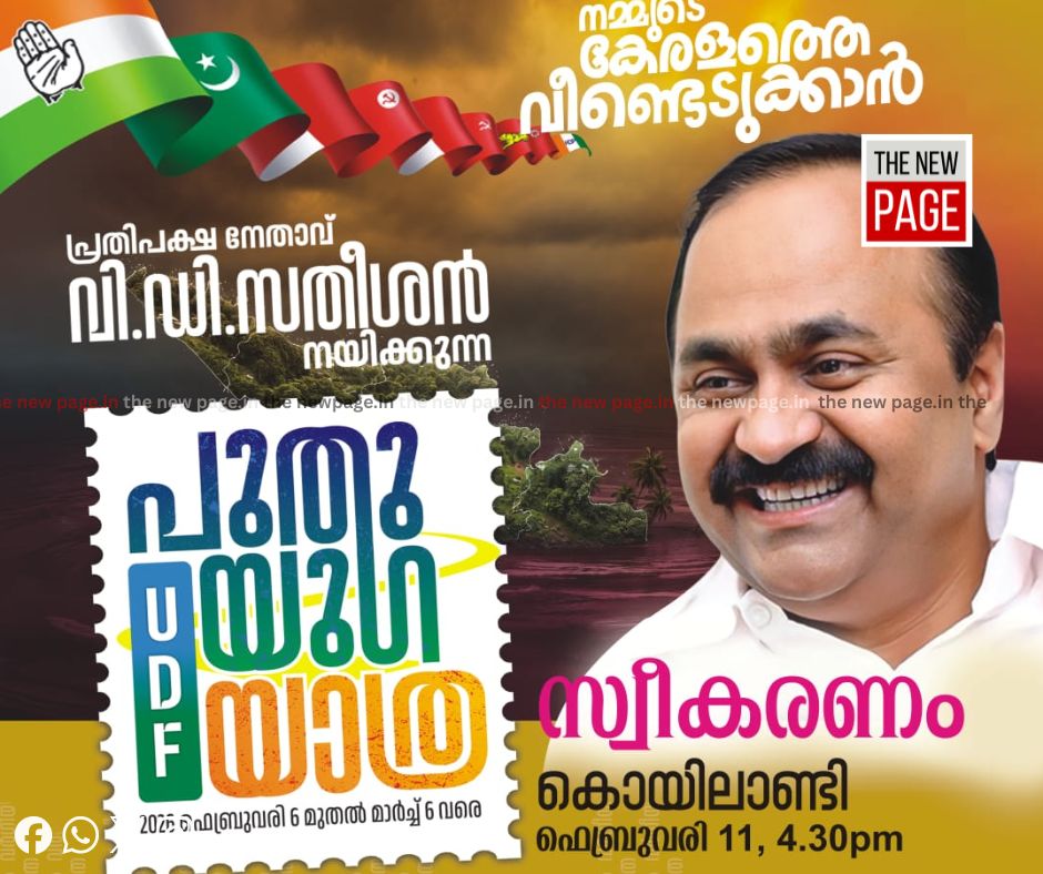 പ്രതിപക്ഷ നേതാവ് വി.ഡി സതീശൻ നയിക്കുന്ന പുതുയുഗ യാത്രയ്ക്ക് നാളെ വൈകുന്നേരം 4 :30 ന് ബസ്റ്റാൻ്റ് പരിസരത്ത് സ്വീകരണം നൽകും. സ്റ്റേഡിയം പരിസരത്ത് നിന്ന് ജാഥയെ സ്വീകരിക്കും. സ്വീകരണ സമ്മേളനം കെ. പി സി സി പ്രസിഡണ്ട് സണ്ണി ജോസഫ് എം.എൽ എ ഉദ്ഘാടനം ചെയ്യും. യൂത്ത് ലീഗ് സംസ്ഥാന പ്രസിഡണ്ട്  സയ്യിദ് മുനവറലി ശിഹാബ് തങ്ങൾ മുഖ്യപ്രഭാഷണം നടത്തും. കെ.പി സി സി വർക്കിംഗ് പ്രസിഡണ്ട് ഷാഫി പറമ്പിൽ എം.പി. ഡി. സി സി പ്രസിഡണ്ട് അഡ്വ കെ പ്രവീൺ കുമാർ, മുസ്ലിം ലീഗ് ജില്ലാ പ്രസിഡണ്ട് കെ. റസാഖ് മാസ്റ്റർ, ജനറൽ സെക്രട്ടറി ടി. ടി ഇസ്മയിൽ എന്നിവർ പങ്കെടുക്കുമെന്ന് യു.ഡി എഫ് നിയോജകമണ്ഡലം ചെയർമാൻ മഠത്തിൽ അബ്ദുറഹ്മാൻ, കൺവീനർ മഠത്തിൽ നാണു മാസ്റ്റർ, വി.പി ഭാസ്കരൻ, മുരളി തോറോത്ത് എന്നിവർ അറിയിച്ചു.