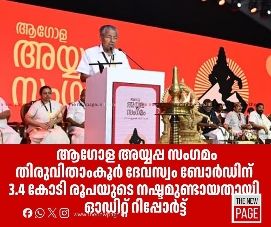 സംസ്ഥാന സർക്കാർ ആഗോള അയ്യപ്പ സംഗമം സംഘടിപ്പിച്ചതിൽ തിരുവിതാംകൂർ ദേവസ്വം ബോർഡിന് 3.4 കോടി രൂപയുടെ നഷ്ടമുണ്ടായതായി ഓഡിറ്റ് റിപ്പോർട്ട്. ഓഡിറ്റ് റിപ്പോർട്ട് ബുധനാഴ്ച കോടതിയിൽ സമർപ്പിക്കും. സംസ്ഥാന സർക്കാരിൽ നിന്നോ ദേവസ്വം ബോർഡിൽ നിന്നോ അയ്യപ്പ സംഗമത്തിനായി പണം കൈപ്പറ്റരുതെന്ന് കോടതിയുടെ കർശന നിർദേശമുണ്ടായിരുന്നുവെങ്കിലും അത് ലംഘിച്ചതായുള്ള സൂചനകളാണ് പുറത്തു വരുന്നത്.