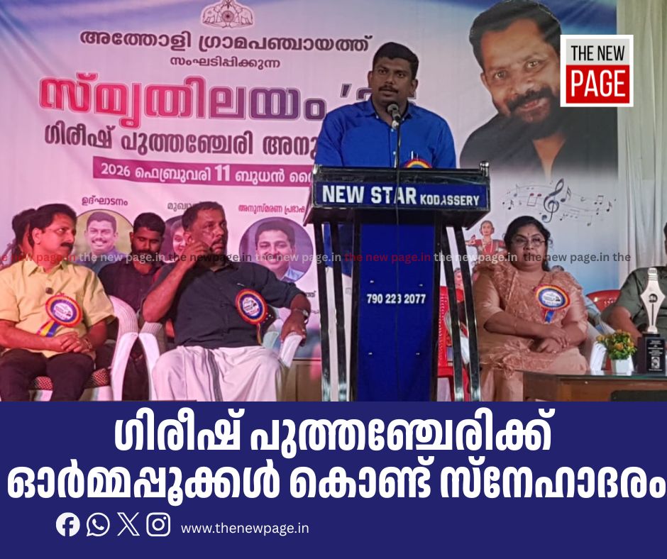 പുത്തഞ്ചേരിയെന്ന ഗ്രാമപ്പേര് തൻ്റെ പ്രതിഭാവിലാസം കൊണ്ട് വാനോളമുയത്തിയ ഗിരീഷിന് ഓർമ്മപ്പൂക്കൾ കൊണ്ട് സ്നേഹാദരം. അത്തോളി ഗ്രാമപഞ്ചായത്തിൻ്റെ ആഭിമുഖ്യത്തിൽ കൂമുള്ളിയിൽ സംഘടിപ്പിച്ച സ്മൃതിലയം പരിപാടി ഗിരീഷ് പുത്തഞ്ചേരി രചിച്ച ഗാനങ്ങൾ കൊണ്ടും അദ്ദേഹത്തെ കുറിച്ചുള്ള ഓർമ്മകൾ ഉണർത്തുന്ന സ്നേഹഭാഷണങ്ങൾ കൊണ്ടും രാപകലിനെ ധന്യമാക്കി.
