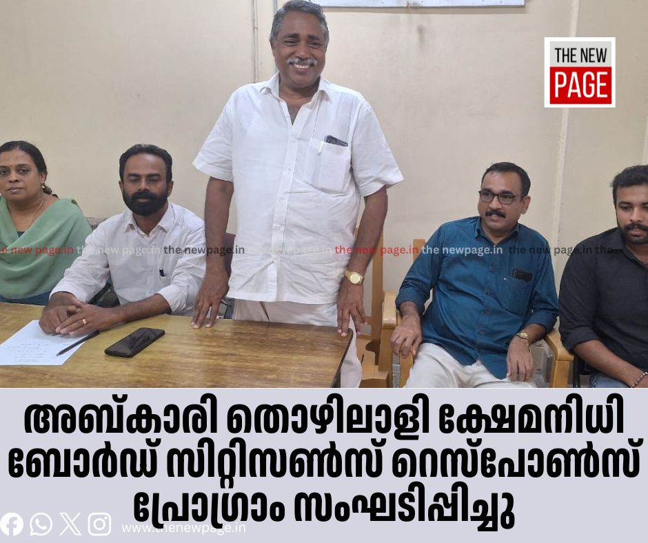 അബ്കാരി തൊഴിലാളി ക്ഷേമനിധി ബോർഡ് കോഴിക്കോട് മേഖലാ ഓഫീസിൻ്റെ ആഭിമുഖ്യത്തിൻ നവകേരളം സിറ്റിസൺ റെസ്പോൺസ് പ്രോഗ്രാം സംഘടിപ്പിച്ചു. മടവൂർ ഗ്രാമപഞ്ചായത്ത് വൈസ് പ്രസിഡണ്ട് സി.കെ ഗിരീഷ് കുമാർ ഉദ്ഘാടനം ചെയ്തു. ജിഷ വി ജി അധ്യക്ഷത വഹിച്ചു. സബീഷ് കുന്നങ്ങോത്ത് സജീവൻ പി, രതീഷ്, എം പി, ശ്രീനിവാസൻ കോരപ്പറ്റ, ഗിരീഷ് പി, ആദർശ് കെ.പി, ശിവശങ്കരൻ എം എന്നിവർ സംസാരിച്ചു.