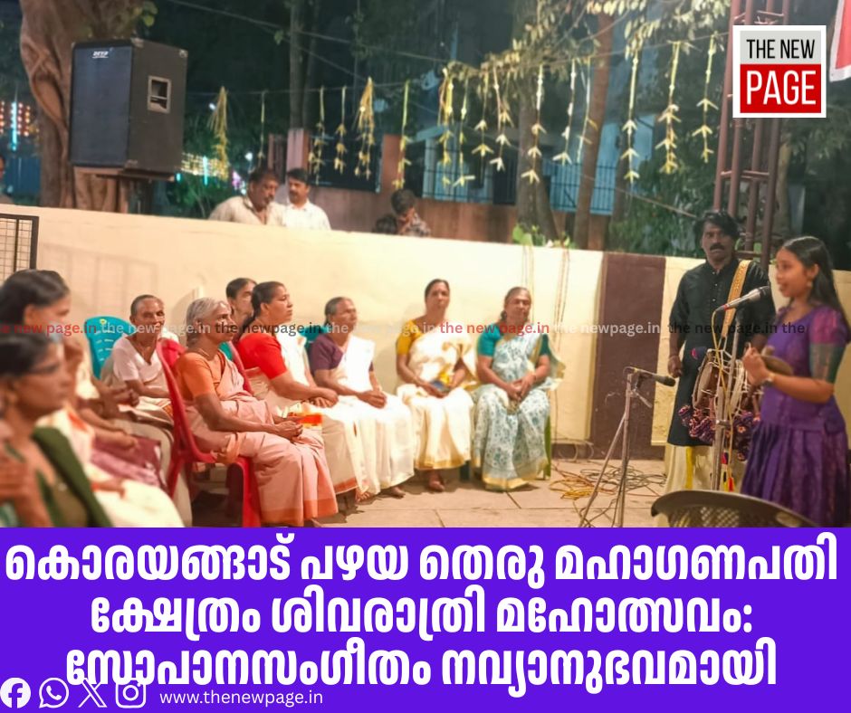 കൊയിലാണ്ടി കൊരയങ്ങാട് പഴയ തെരു മഹാഗണപതി ക്ഷേത്രം ശിവരാത്രി മഹോത്സവത്തിന്റെ ഭാഗമായി സംസ്ഥാന സ്കൂൾ കലോൽസവ ജേതാവ് ശിവഗംഗ നാഗരാജ് അവതരിപ്പിച്ച സോപാനസംഗീതം ശ്രോതാക്കൾക്ക് നവ്യാനുഭവമായി. ദേവീദേവൻമാരെ സ്തുതിച്ച് കൊണ്ടുള്ളതാണ് സോപാന സംഗീതം. ഇടയ്ക്ക സമന്വയിച്ച് ഗിന്നസ് ബുക്ക് ജേതാവ് പാലക്കാട് സുബ്രഹ്മണ്യനും സോപാന സംഗീതത്തിന് അകമ്പടിയേകി. സംഗീതജ്ഞൻ പാലക്കാട് പ്രേംരാജ് അവതരണം നടത്തി.