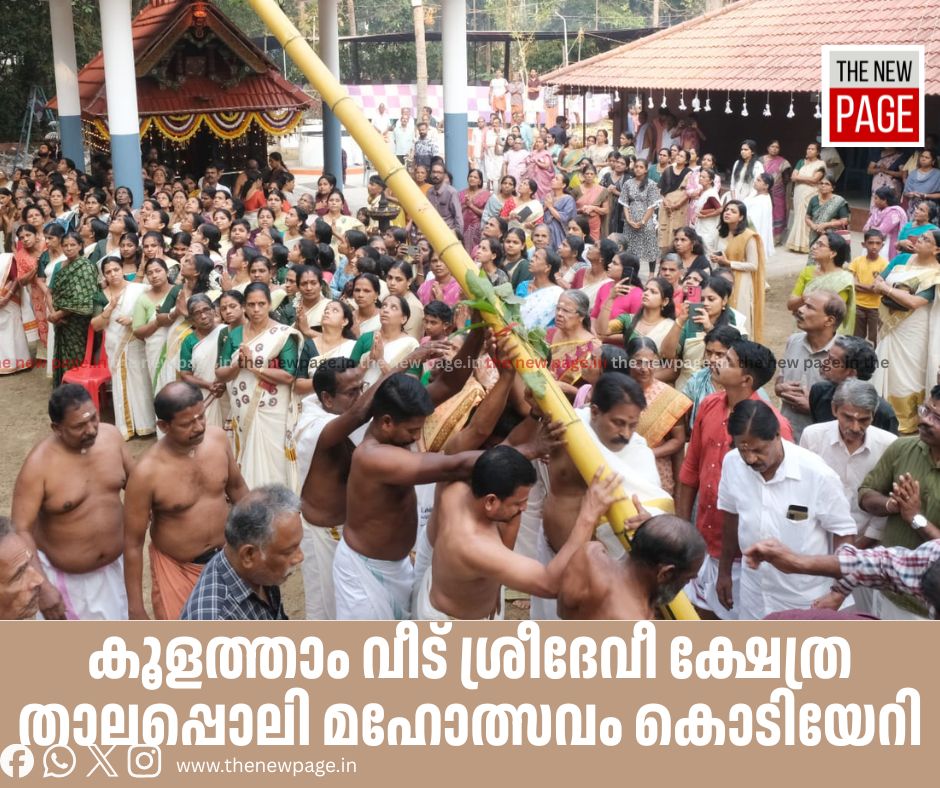 കൂളത്താം വീട് ശ്രീദേവീ ക്ഷേത്ര താലപ്പൊലി മഹോത്സവം ഇന്ന് കാലത്ത് ക്ഷേത്രം മേൽശാന്തി ശ്രീ വിപേഷ് ഇല്ലത്തിന്റെ മുഖ്യ കാർമികത്വത്തിൽ കൊടിയേറി. ഉച്ചക്ക് അന്നദാനം, തുടർന്ന് വൈകീട്ട് 3.30 മുതൽ വെള്ളാട്ടുകൾ