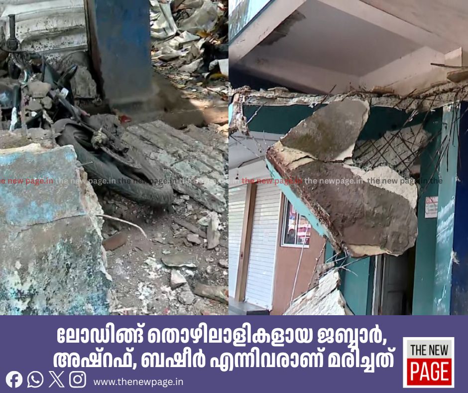 കോഴിക്കോട് വലിയങ്ങാടിയിൽ കെട്ടിടത്തിന്റെ കോൺക്രീറ്റ് സ്ലാബ് തകർന്നുവീണുണ്ടായ അപകടത്തിൽ മരിച്ചവരുടെ എണ്ണം മൂന്നായി. ജബ്ബാര്, അഷ്റഫ്, ബഷീര് എന്നിവരാണ് മരിച്ചത്. അപകടത്തിൽ പരിക്കേറ്റ 5 പേരെ രക്ഷപ്പെടുത്തി ആശുപത്രിയിലേക്ക് മാറ്റിയിരുന്നു. ഇവരിൽ മൂന്ന് പേരുടെ മരണമാണ് ഇപ്പോള് സ്ഥിരീകരിച്ചിരിക്കുന്നത്. ബീച്ചിലെ പഴയ പാസ്പോർട്ട് ഓഫീസ് കെട്ടിടമാണ് തകർന്നുവീണത്. മരിച്ചവർ ലോഡിങ്ങ് തൊഴിലാളികളാണ്. കിണാശ്ശേരി സ്വദേശിയാണ് ജബ്ബാര്. തൊട്ടടുത്തുള്ള സ്ഥാപനത്തിന്റെ ഗോഡൌണായി പ്രവര്ത്തിച്ചു വരികയായിരുന്നു ഈ കെട്ടിടം. ഇവിടേക്കുള്ള സാധനങ്ങള് ഇറക്കിയതിന് ശേഷം ഷട്ടറിനോട് ചേര്ന്നുള്ള തറയിലിരുന്ന് വിശ്രമിക്കുകയായിരുന്ന സമയത്താണ് കെട്ടിടത്തിന്റെ സ്ലാബ് തകര്ന്നു വീണത്. ഏഴുപേരിൽ രണ്ട് പേര് ഓടി. ബാക്കി 5 പേരുടെ മുകളിലേക്ക് സ്ലാബ് പതിക്കുകയായിരുന്നു.