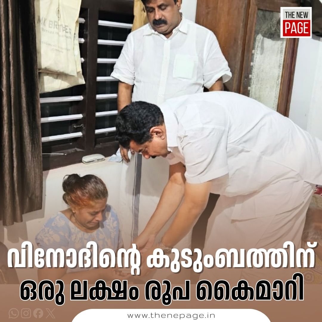 തിരുവങ്ങൂർ വെറ്റിലപ്പാറ കിഴക്കെ കാഞ്ഞിരക്കണ്ടി വിനോദിന്റെ കുടുംബത്തിന് ഡിസിസി പ്രസിഡണ്ട് അഡ്വക്കേറ്റ് പ്രവീൺകുമാറും പി.വി. അൻവറും ചേർന്ന് ഒരു ലക്ഷം രൂപ കൈമാറി. ചേമഞ്ചേരി ഗ്രാമ പഞ്ചായത്ത് പ്രസിഡൻ്റ് അജയ് ബോസ് കൂടെ ഉണ്ടായിരുന്നു.