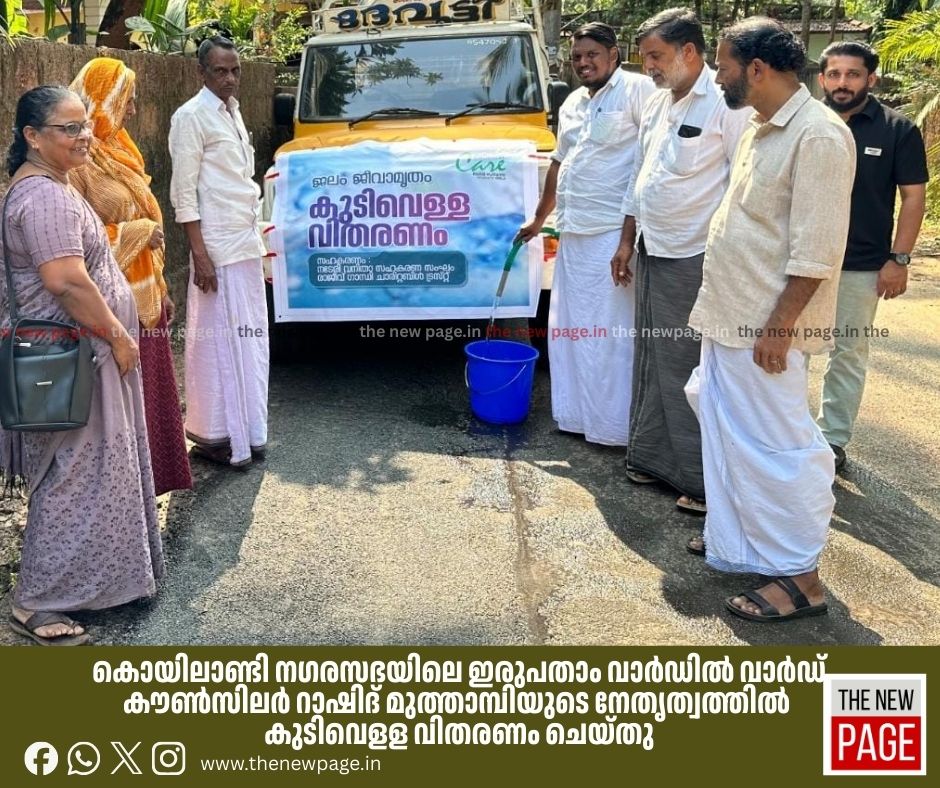 വേനല് കനത്തതോടെ നടേരി, മുത്താമ്പി മേഖലയില് കുടിവെളള ക്ഷാമം രൂക്ഷമാകുന്നു. കൊയിലാണ്ടി നഗരസഭയിലെ ഇരുപതാം വാര്ഡില് ഉള്പ്പെടുന്ന വടാപ്പുറം കുനി, തെയ്യപ്പുറത്ത്, അണേല പുതുക്കുടി, ആഴാവില് താഴ, മീവര് കണ്ടി, നീലിവിട്ടില്ത്താഴ എന്നിവിടങ്ങളില് കടുത്ത ജലക്ഷാമമാണ് നേരിടുന്നത്. കുടിവെള്ളക്ഷാമം നേരിടുന്ന പ്രദേശങ്ങളില് വാര്ഡ് കൗണ്സിലര് റാഷിദ് മുത്താമ്പിയുടെ നേതൃത്വത്തില് കുടിവെളള വിതരണം ചെയ്തു. ശ്രീധരന് നായര് പുഷ്പശ്രീ, വിജയലക്ഷ്മി,രവി കൊല്ലോറക്കല്, ബാലന് കിടവ്, ബാബു പുതിയേട്ടന്,റാഫി അറഫ എന്നിവര് നേതൃത്വം നല്കി.