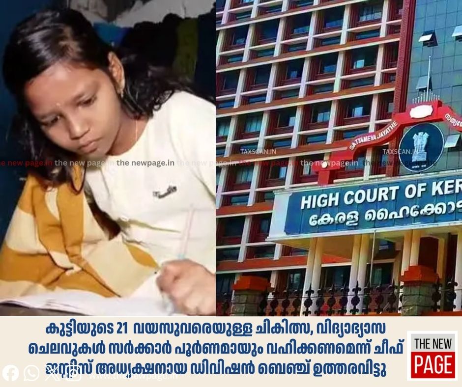 ചികിത്സപ്പിഴവിനെ തുടർന്ന് വലതുകൈ മുറിച്ചുമാറ്റേണ്ടി വന്ന ഒമ്പത് വയസുകാരി വിനോദിനിക്കായി ഹൈക്കോടതിയുടെ സുപ്രധാന ഇടപെടൽ. കുട്ടിയുടെ ഇരുപത്തിയൊന്നാം വയസുവരെയുള്ള ചികിത്സ, വിദ്യാഭ്യാസ ചെലവുകൾ സർക്കാർ പൂർണമായും വഹിക്കണമെന്ന് ചീഫ് ജസ്റ്റിസ് അധ്യക്ഷനായ ഡിവിഷൻ ബെഞ്ച് ഉത്തരവിട്ടു. കൈ നഷ്ടപ്പെട്ടത് ഭാവിയിൽ ജോലി ലഭിക്കുന്നതിന് തടസമാകരുതെന്നും ഇക്കാര്യത്തിൽ സർക്കാർ ഉറപ്പുവരുത്തണമെന്നും കുറ്റക്കാർക്കെതിരെ നിയമാനുസൃത നടപടിയെടുക്കണമെന്നും കോടതി നിർദേശിച്ചു.