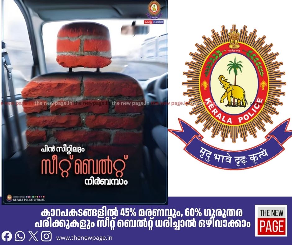 അതിനാൽ, വാഹനത്തിൽ സഞ്ചരിക്കുമ്പോൾ മുന്നിലായാലും പിന്നിലായാലും എല്ലാ യാത്രക്കാരും സീറ്റ്ബെൽറ്റ് ധരിക്കേണ്ടത് നിയമപരമായും സുരക്ഷക്കായും നിർബന്ധമാണ്. യാത്രയുടെ ആരംഭത്തിൽ തന്നെ എല്ലാവരും സീറ്റ്ബെൽറ്റ് ധരിച്ചിരിക്കുന്നുവെന്ന് ഉറപ്പാക്കണം. സുരക്ഷാ മാനദണ്ഡങ്ങൾ കൃത്യമായി പാലിക്കുകയും, ഓരോ യാത്രയും സുരക്ഷിതമാക്കുകയും ചെയ്യുക.