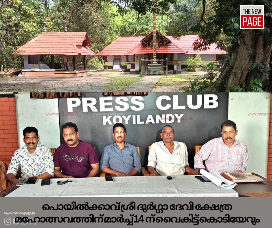 മലബാറിലെ പ്രസിദ്ധമായ പൊയിൽക്കാവ് ശ്രീ ദുർഗ്ഗാ ദേവി ക്ഷേത്ര മഹോത്സവത്തിന് മാർച്ച് 14 ന് വൈകിട്ട് കൊടിയേറും. കുമാരത്തില്ലത്ത് വാസുദേവൻ നമ്പൂതിരിപ്പാടിൻ്റെ മുഖ്യ കാർമികത്വത്തിലാണ് കൊടിയേറ്റം. 14 ന് കലവറ നിറയ്ക്കൽ, ഭജന 15 ന് രാത്രി ഏഴ് മണിക്ക്. ബി.ആർ ദേവാനന്ദിൻ്റെ തായമ്പക, കലാസന്ധ്യ.