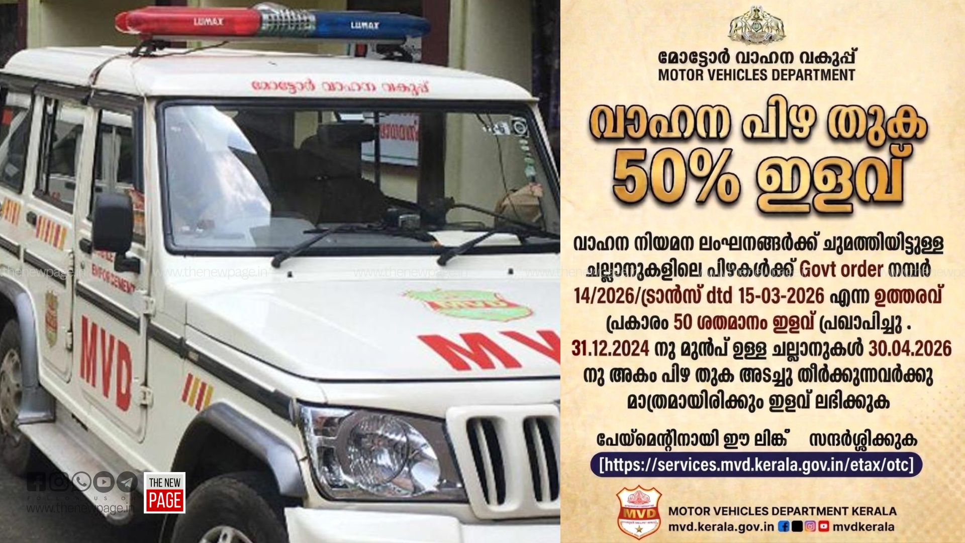30.12.2024ന് മുൻപ് ചുമത്തിയിട്ടുള്ള ചെല്ലാനുകൾക്ക് മാത്രമായിരിക്കും ഈ ഇളവ് ലഭിക്കുക. ഇളവ് ലഭിക്കണമെങ്കിൽ 30.04.2026-നുള്ളിൽ പിഴത്തുക അടച്ചു തീർക്കേണ്ടതുണ്ട്. ഇളവ് ആനുകൂല്യം നേടുന്നതിനായി വാഹന ഉടമകൾ മോട്ടോർ വാഹന വകുപ്പിന്റെ ഔദ്യോഗിക പോർട്ടലായ https://services.mvd.kerala.gov.in വഴി രജിസ്റ്റർ ചെയ്യണമെന്നും മോട്ടോര് വാഹന വകുപ്പ് പുറത്തിറക്കിയ അറിയിപ്പിൽ വ്യക്തമാക്കുന്നുണ്ട്.