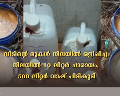 വീടിന്റെ മുകള്‍ നിലയില്‍ ഒളിപ്പിച്ച നിലയില്‍ 10 ലിറ്റര്‍ ചാരായം, 500 ലിറ്റര്‍ വാഷ് പിടികൂടി