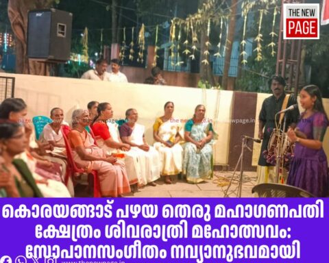 Moreകൊയിലാണ്ടി കൊരയങ്ങാട് പഴയ തെരു മഹാഗണപതി ക്ഷേത്രം ശിവരാത്രി മഹോത്സവത്തിന്റെ ഭാഗമായി സംസ്ഥാന സ്കൂൾ കലോൽസവ ജേതാവ് ശിവഗംഗ നാഗരാജ് അവതരിപ്പിച്ച സോപാനസംഗീതം ശ്രോതാക്കൾക്ക് നവ്യാനുഭവമായി. ദേവീദേവൻമാരെ സ്തുതിച്ച് കൊണ്ടുള്ളതാണ്